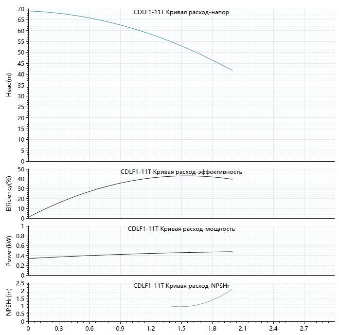 CDLF многоступенчатый насос вертикального типа. Применяется для повышения давления в системах отопления и горячего водоснабжения. Популярная модель за счет сочетания цены и качества. С буквой «Т» в наименовании, с напряжением питания от сети 380В. Гарантия 2 года Модель CDLF1-11T Максимальная производительность Qmax, м3/ч 2.0 Максимальный напор Hmax, м.в.ст. 69 Номинальный расход Q м3/ч 1 Скорость вращения(r/min) 2900 Рабочее колесо 11 Мощность Вт 550 W Частота Гц 50 Номинальное напряжение В 380 Номинальный ток А 1.33 Диапазон температур -20℃~+120℃ Максимальная температура окружающей среды 40℃